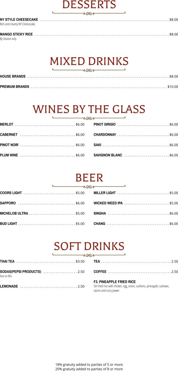 Thai Fusion Cuisine | 211 Central Park Drive, Pinehurst, NC 28374 | 910-420-8738